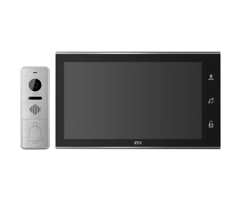 Монитор видеодомофона CTV-M4105AHD черный, стеклянная сенсорная панель управления "Easy Buttons", поддержка форматов AHD, TVI, CVI и CVBS с разрешением 1080p/720p/960H, автоответчик, режим ожидания с индикацией времени, встроенный источник питания, цветной IPS дисплей диагональю 10 дюймов (25 см), функция автоматического определения формата видеосигнала, детектор движения, поддержка карт памяти до 64Gb, возможность подключения до 2-х вызывных панелей и до 2-х дополнительных охранных видеокамер, объединения до 4 мониторов в системе, дистанционное управление электрозамком/электрозащёлкой, Hands free, полудуплекс, габаритные размеры 264,8мм (Ш) х 157,8мм (В) х 25,3мм (Г), цвет черный